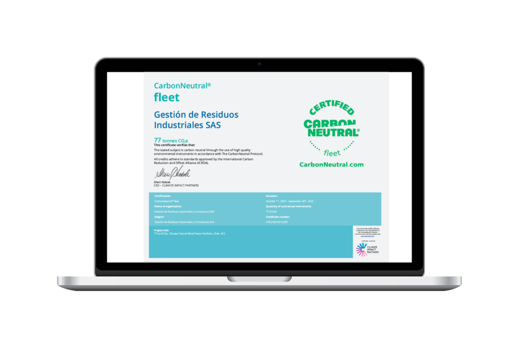 En GRI hemos obtenido la certificación CarbonNeutral® Fleet, un reconocimiento internacional que avala nuestra estrategia de reducción y compensación de las emisiones generadas por nuestra flota de transporte.